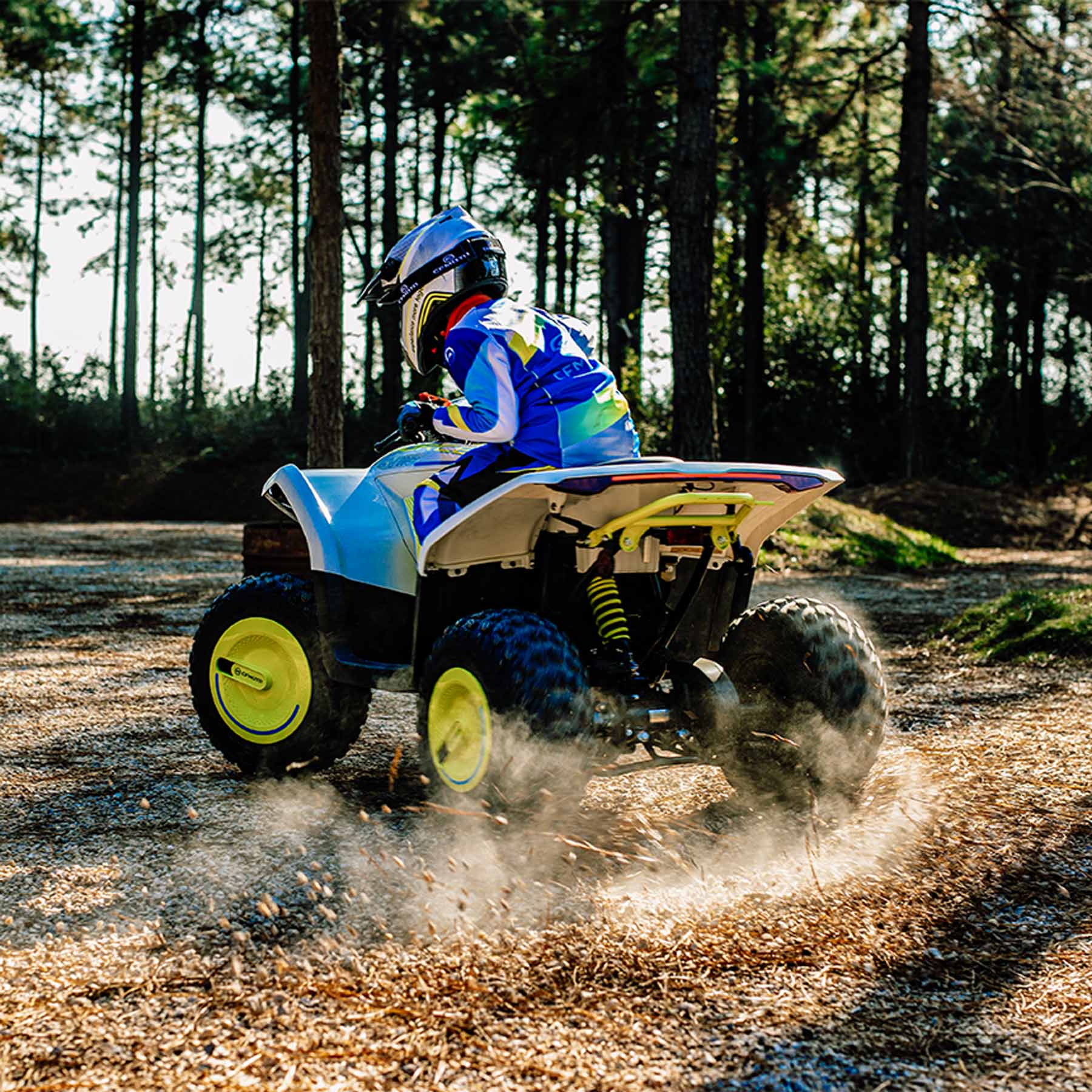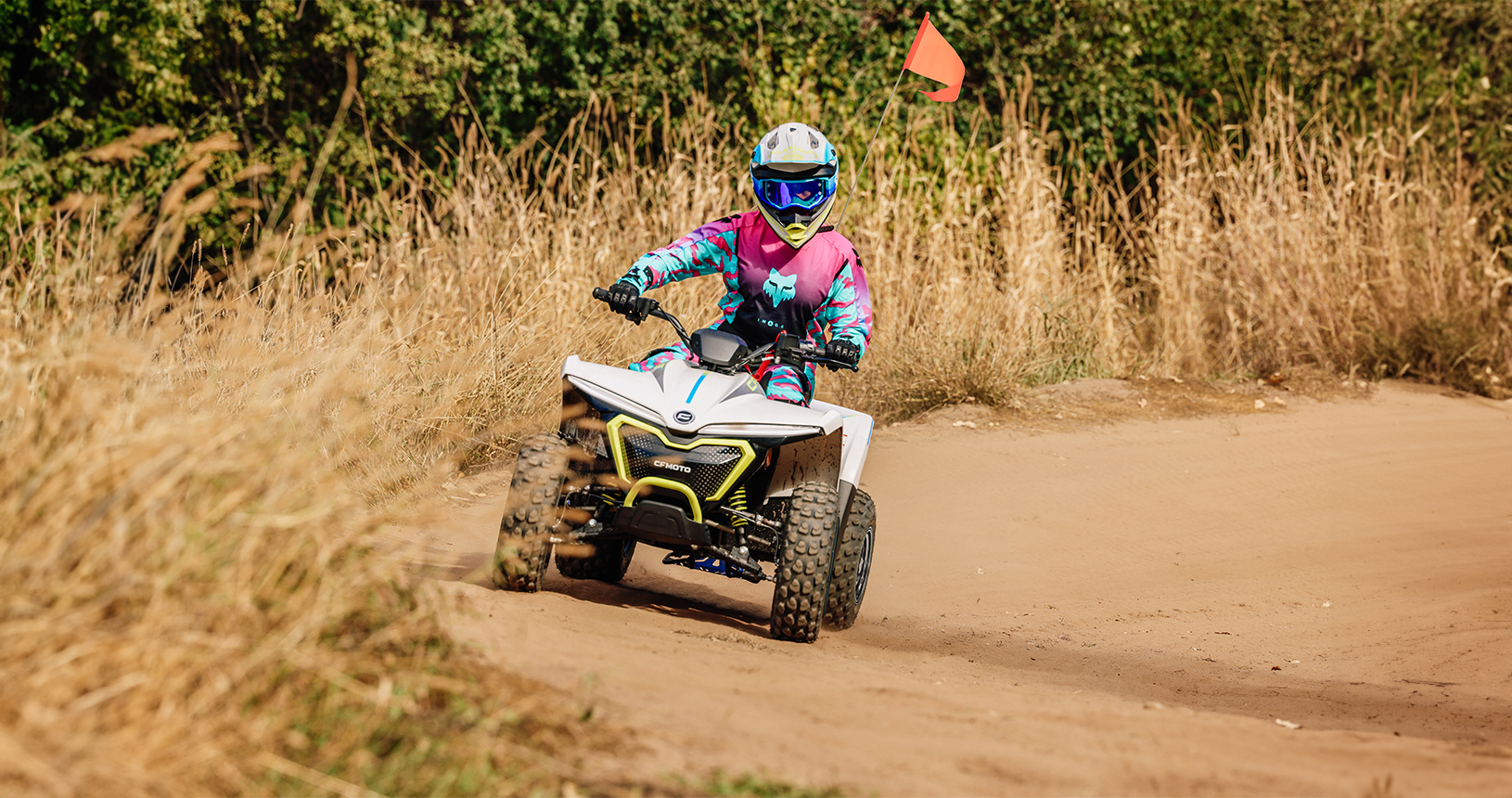 Die sportliche vollhydraulische Scheibenbremsanlage erreicht Verzögerungswerte wie bei ausgewachsenen ATVs. Die CFORCE EV110 ist robust und wurde auf verschiedenen Strassenbelägen und im unwegsamen Gelände getestet und können in Temperaturen von -15°C bis 45°C genutzt werden. Für bessere Sichtbarkeit sorgt eine eineinhalb Meter hohe Sicherheitsflagge.