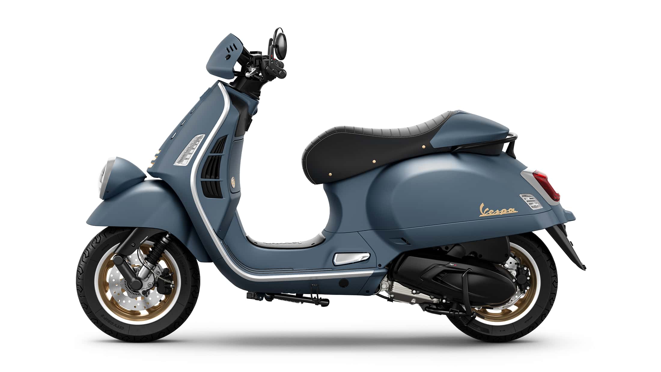 Die Vespa Primavera und die Vespa Gtv Officina 8 heben sich sofort von der Masse ab durch ihre exklusive Farbe Blau Officina 8, ein intensives Industrieblau mit einem speziellen matten Metallic-Finish, das die Zeit zurückdreht und an die industrielle Umgebung der Vergangenheit erinnert: Maschinen wie Schraubstöcke, Drehbänke und Schleifscheiben sowie praktische, langlebige Arbeitskleidung.